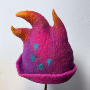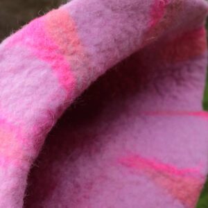 Słodki, iskrzący w słońcu różowymi kryształkami, promienny filcowy kapelusz do sauny. Mi kojarzy się z kolorami zorzy polarnej. czapka jest mięsista , ok 8 mm pasuje na głowę 56 x 59 cm